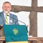 The Rev. Jeff Allen, a United Methodist minister and executive director of West Virginia Council of Churches, speaks during the opening segment of Tuesday’s “Compassion Calls Us” event at First Christian Church in Parkersburg. (Photo by Jeff Baughan)