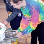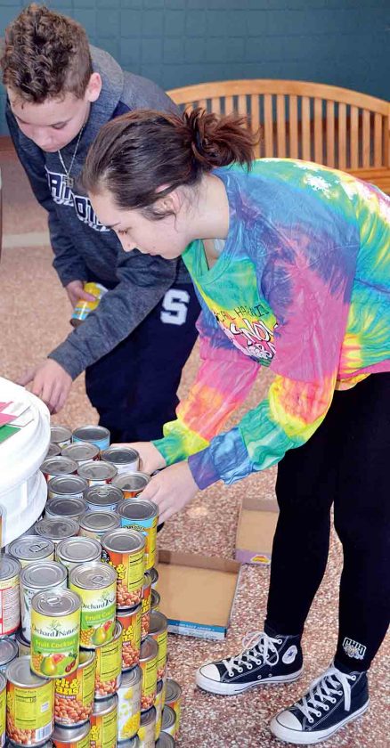 A group of around 25 high school students spent part of the day Monday creating art sculptures out of canned foods as part of a project through the United Way Alliance of the Mid-Ohio Valley’s Student United Way Board to address problems in the area. (Photo by Brett Dunlap)