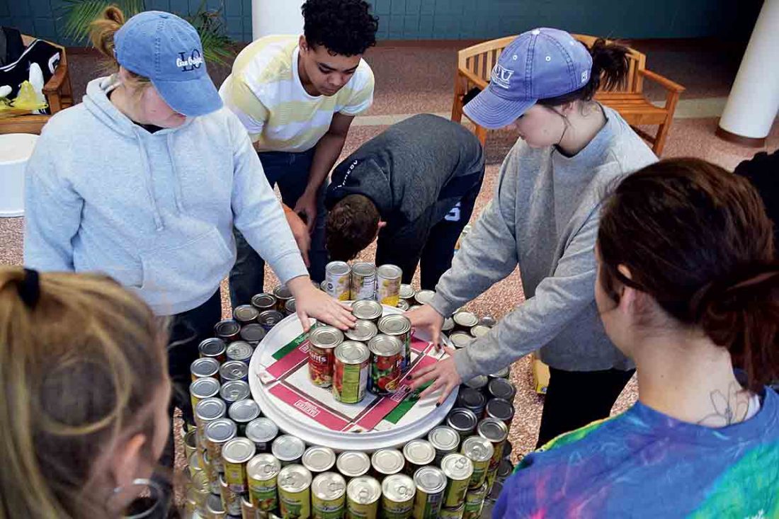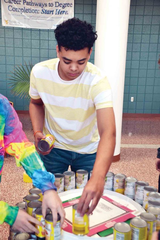 Local high school students involved in the Student United Way Board gathered throughout the day Monday at the WVU-P Caperton Center for Applied Technology to create art sculptures using donated and purchased canned foods, said David Creel, director of Special Events & Projects at WVU-P.