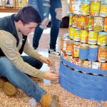 Quentin Kennedy, a student at Parkersburg South High School, helps assemble a sculpture of donated canned foods at the WVU-P Caperton Center for Applied Technology as part of a project through the local Student United Way Board to bring attention to the issue of hunger in the area. (Photo by Brett Dunlap)