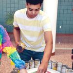 Clay Burrows, co-chairman of the local Student United Way Board’s Hunger Solutions Committee and a student at PSHS, works on a can sculpture project Monday at the WVU-P Caperton Center for Applied Technology. (Photo by Brett Dunlap)