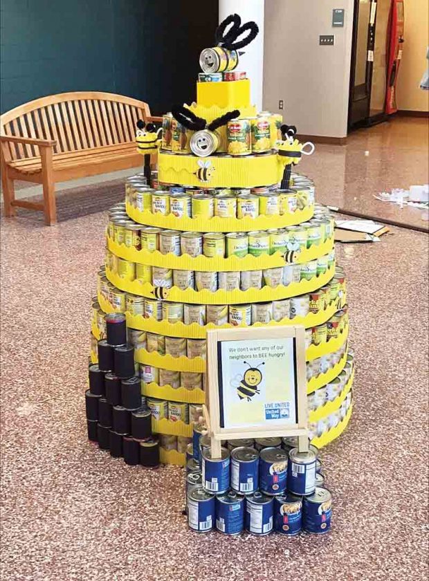 - “The Beehive” is one of three sculptures created out of canned foods Monday at the WVU-P Caperton Center for Applied Technology by the local Student United Way Board to bring attention to the issue of hunger in the area. (Photo Provided)