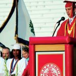 “President John F. Kennedy and street poet Gazzy Garcia, more widely known as Lil Pump, both said ‘Change is the law of life, and those who look only to the past and present are certain to miss the future.’ Don’t miss your future because you are tied up in your past,” said Parkersburg High School co-Valedictorian David Snider, right, in his address Thursday during the school’s commencement ceremony.