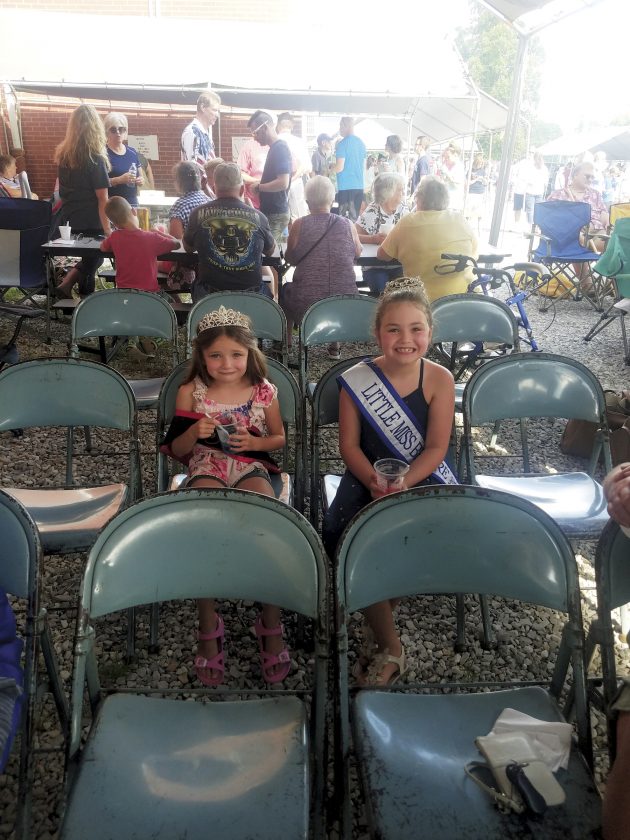 Photo by Madeline Scarborough Jayda Haynes, 6, Tiny Miss Apple of Your Eye, and her cousin Alice Haynes, 7, Little Miss Belpre, enjoy the ice cream social in Little Hocking Thursday.