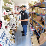 Photo by Jeff Baughan Joe Means looks at inventory parts. Lemon’s Farm Equipment ranked fourth in North American sales for Massey Ferguson for 2016.