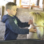 Photo by Peyton Neely Maddox Antill, 7, holds on to one of the miniature ponies that are used with the Pampered Pets Petting Farm at the Antill Farm near Beverly.