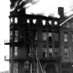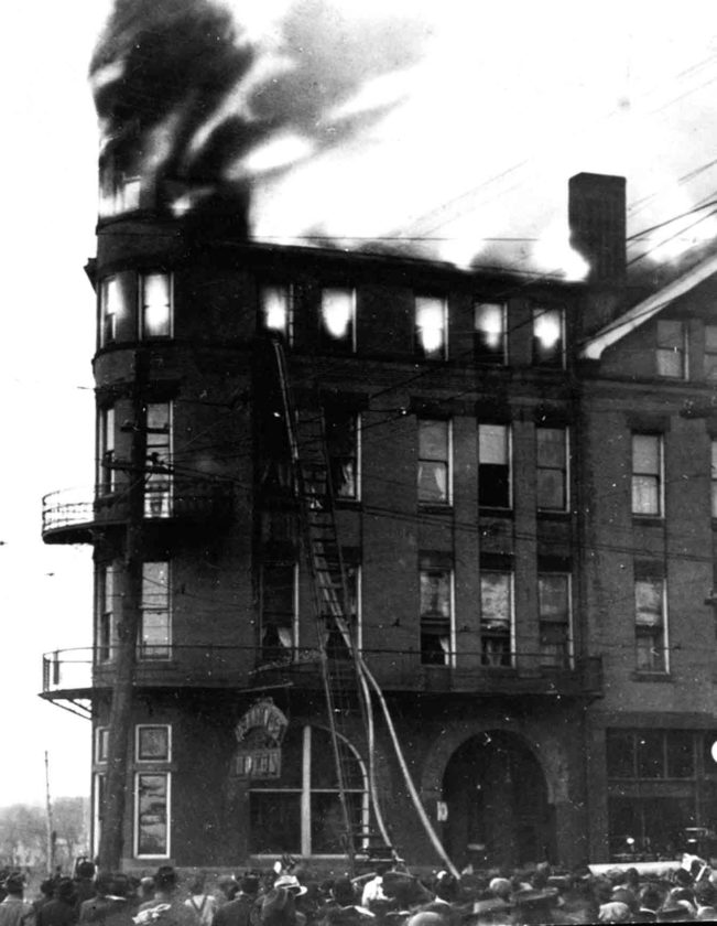 Courtesy of Special Collections, Legacy Library, Marietta College Spectators watch as the Bellevue Hotel in Marietta burns in 1916. Two years later, the Lafayette Hotel opened on the same site.