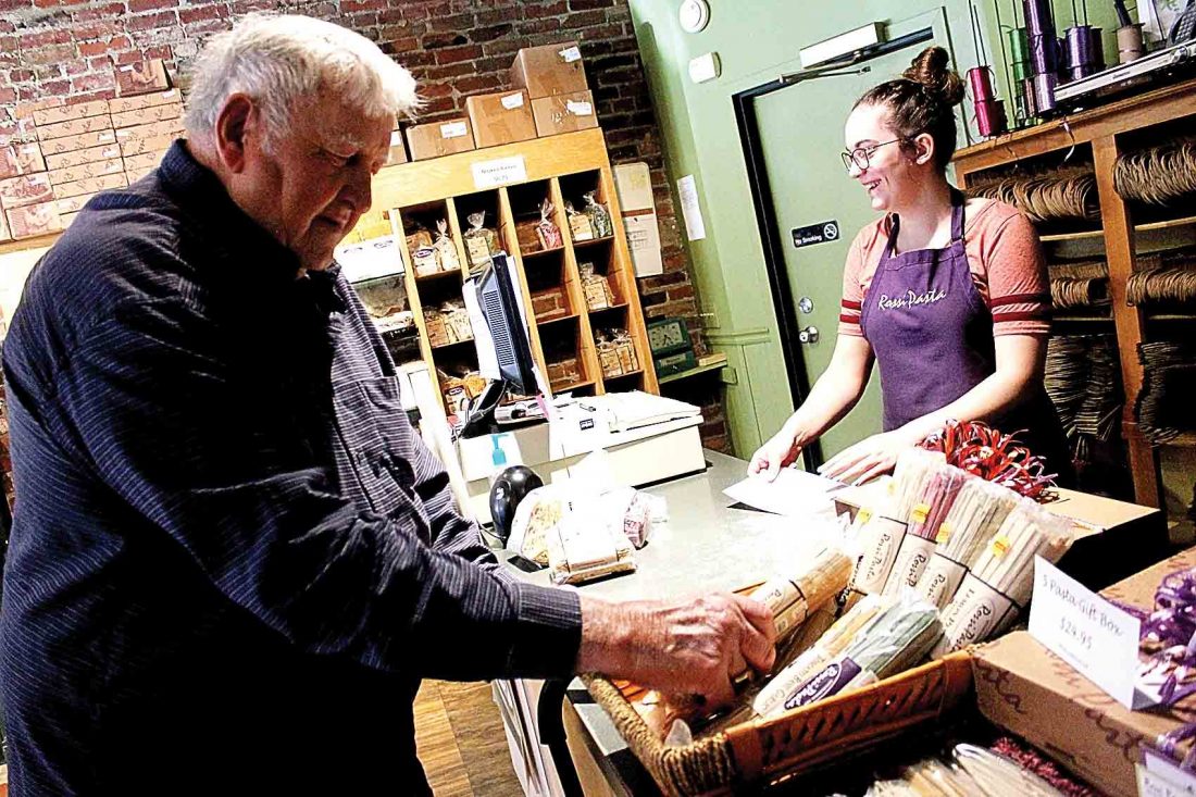 Photo by Janelle Patterson Fred Stanley, 83, of Albany, Ohio, shopped at Rossi Pasta and asked Lexie Riley about sales and pasta varieties for his daughter.
