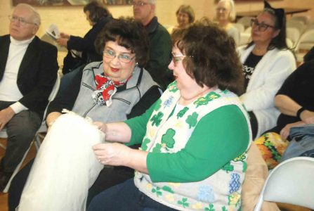 - Belpre resident Ruth Callihan, left, and her cousin, Dina Braniff of Washington, W.Va., look at a veil made with glow-in-the-dark thread produced by Kreinik Manufacturing during a presentation Saturday at the Blennerhassett Museum of Regional History. (Photo by Evan Bevins)