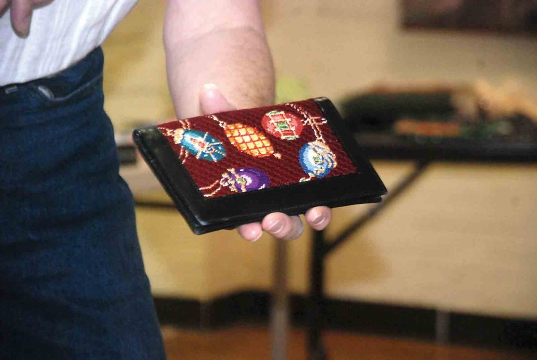 - This billfold was made using filament and spun silk, to create a 3D effect, and metallic threading, all produced by Kreinik Manufacturing. (Photo by Evan Bevins)