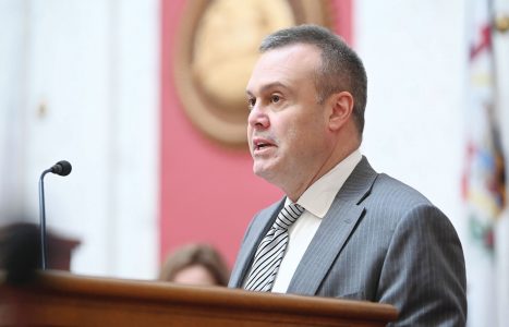 Brian Abraham, chief of staff to Gov. Jim Justice, explains to the House Finance Committee how the tax breaks will work. (Photo courtesyof WV Legislative Photography)