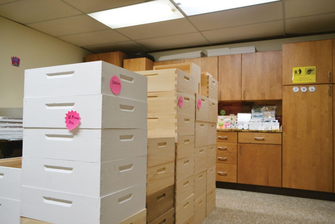 - A stack of Langstroth frames in the Bearsville Bees showroom on Jewell Road. (Photo by Douglass Huxley)
