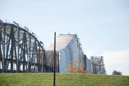 The Memorial Bridge is seen from the Belpre side Thursday afternoon. The $50 million bridge rehabilitation project is expected to be completed by Aug. 31, 2023, earlier than originally announced because the bridge has been closed to all traffic since mid-August. (Photo by Evan Bevins)