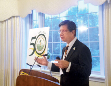 - James W. Nemitz, PhD, president of the West Virginia School of Osteopathic Medicine, gave a presentation at the Parkersburg Country Club in Vienna on Wednesday for the school’s 50th anniversary. (Photo by Douglass Huxley)
