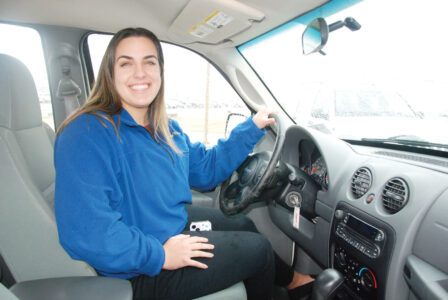 - Mid-Ohio Valley Regional Airport Assistant Manager Sydnie Beall sits behind the wheel of a Jeep Liberty recently fixed up by Kincheloe Motors to serve as a courtesy vehicle at the airport Thursday. (Photo by Evan Bevins)
