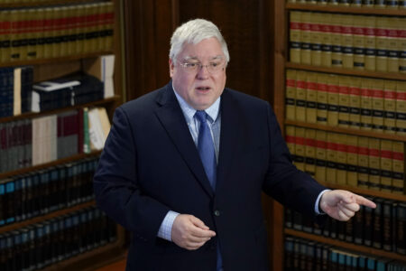 - West Virginia Attorney General Patrick Morrisey speaks with reporters to announce a $68 million settlement with the Kroger pharmacy chain over its role in perpetuating the opioid crisis, during a news conference at the state Capitol in Charleston, W.Va., May 4, 2023. West Virginia is selecting leadership for a newly created foundation tasked with distributing the lion’s share of the more than one billion dollars in opioid settlement money coming to the state. That means funding for opioid treatment and addiction services will soon be going out to communities after years of litigation, Morrisey said Monday, June 26, in his state Capitol office. (AP Photo)