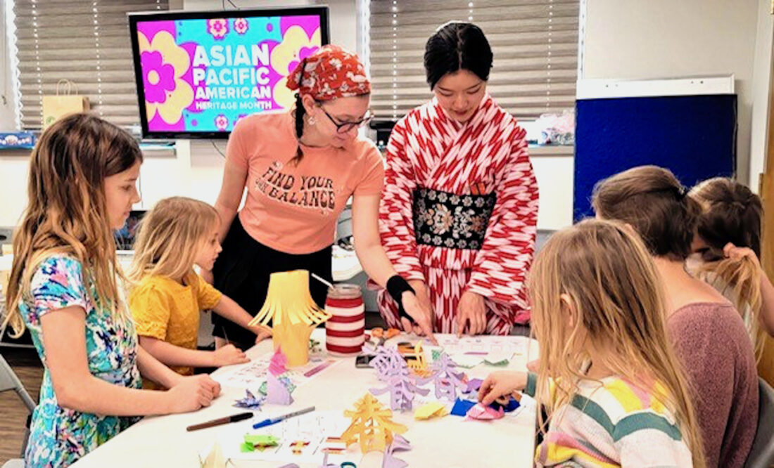 - Ayva Ashby in the kimono teaches kids during an Asian Pacific American Heritage Month program at the Washington County Public Library in Marietta. The library has numerous activities for children aimed at increasing participation in the library when they’re adults. (Photo Provided)