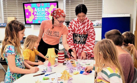 Ayva Ashby in the kimono teaches kids during an Asian Pacific American Heritage Month program at the Washington County Public Library in Marietta. The library has numerous activities for children aimed at increasing participation in the library when they’re adults. (Photo Provided)