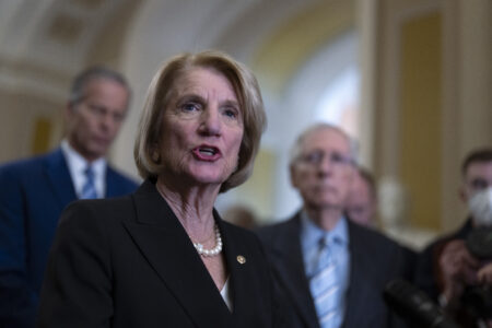 - Sen. Shelley Moore Capito, R-W.Va., speaks to reporters following the Republican policy meeting, at the Capitol in Washington, Wednesday, March 20, 2024. (AP Photo/J. Scott Applewhite)