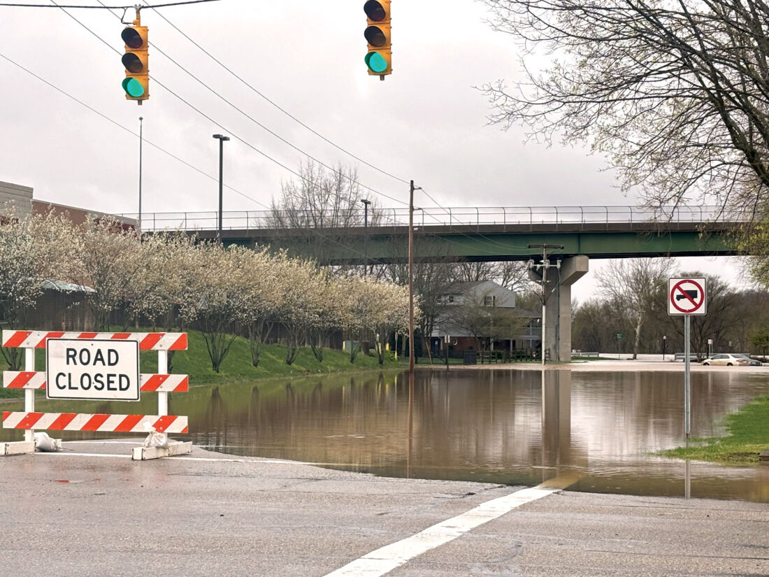 - A street closed sign sits at south Third Street. The street is closed for high water nearwhere it runs under the Williamstown Bridge. (Photo by Michelle Dillon)