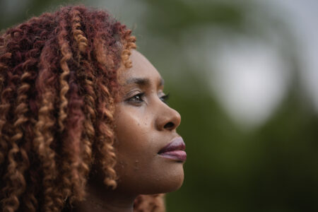 Culix Wibonele poses for a portrait on Monday, April 29, 2024, in Lawrenceville, Ga. Wibonele is a certified nursing assistant working in long-term care. (AP Photo/Brynn Anderson)