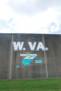 The mural artist, Vienna resident Diana Wilson, is a graphic designer and owner of dDesigns. Wilson said she “wanted to highlight the beauty and nature of our state in an appealing and modern way that gives both a sense of pride and adventure. By combining the fauna with an almost patchwork style I wanted to encompass Appalachia with a bright color palette for its urban landscape. It was an honor to be trusted with such a prime piece of real estate and representation of PKB.”