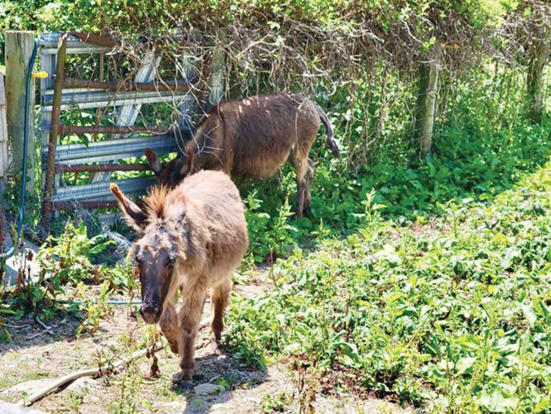 - Two donkeys wander around the lawn at Soul Food Farm in Shepherdstown. (Photo by Tabitha Johnston)