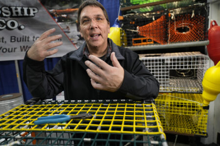 - Lobsterman John Drouin, who fishes waters on the border between the United States and Canada, expresses his views on how President Trump’s planned tariffs will create new challenges for both country’s fishing industry, Thursday, Feb. 27, 2025, in Rockport, Maine. (AP Photo/Robert F. Bukaty)