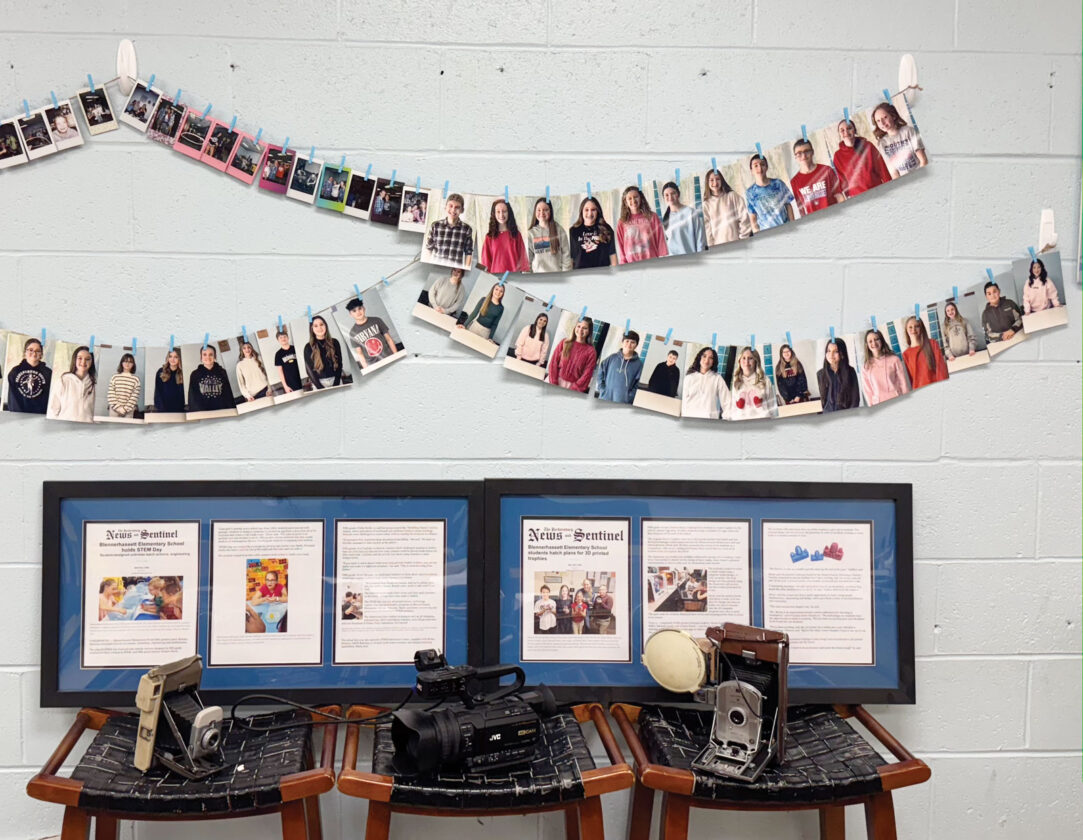 The broadcasting wall of achievement at Blennerhassett Middle School shows all of the seventh-graders who have taken a class about photography. Holmes Marty, a teacher who provides instruction to seventh and eighth grade STEM and broadcasting classes, said students learn from 100 vintage cameras and camcorders about how the cameras were used and how film was developed. (Photo Provided)