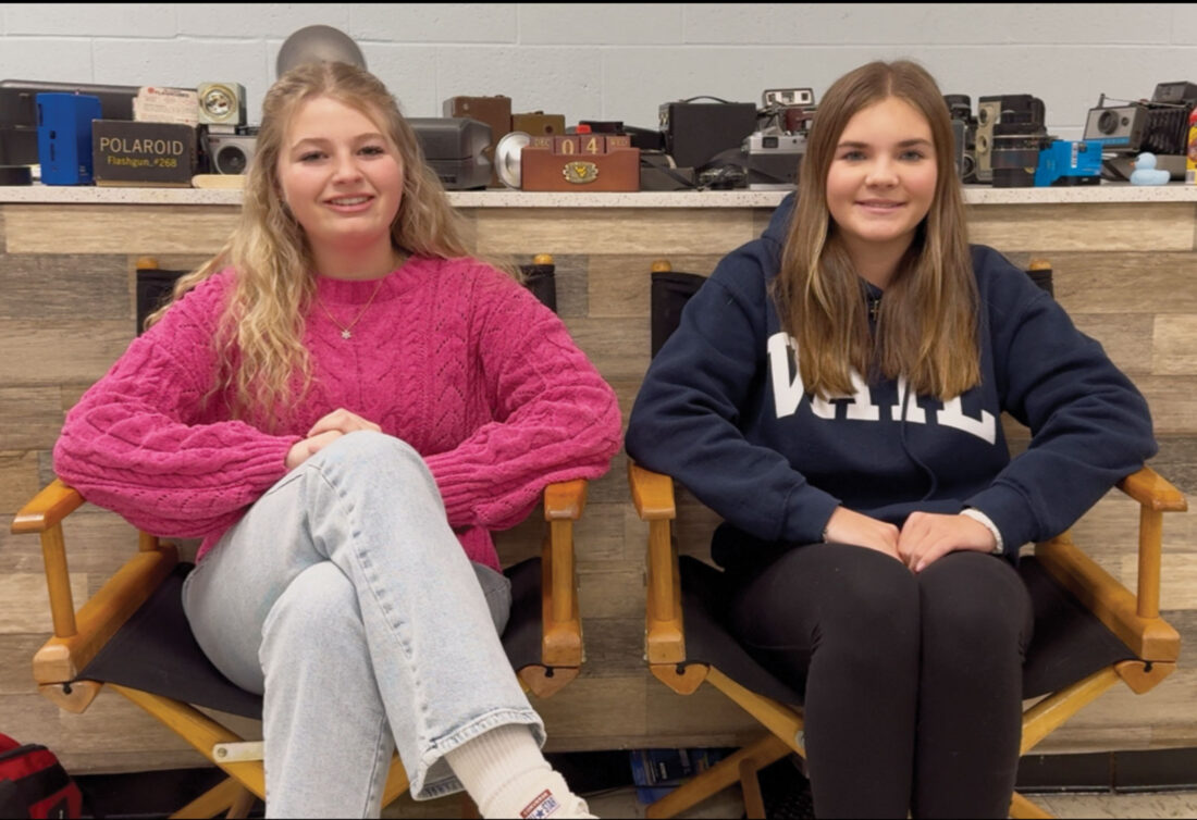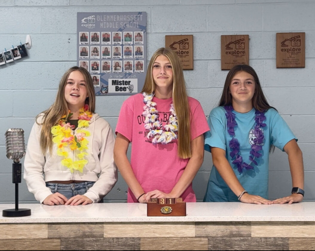 - Blennerhassett Middle School seventh-grade broadcasting class members Morgan Benton, Gwen Silvis and Cate McLain record the school’s morning show in October. Students cover topics like lunch menu, weather, and sports updates and also film, edit and produce the daily show. (Photo Provided)