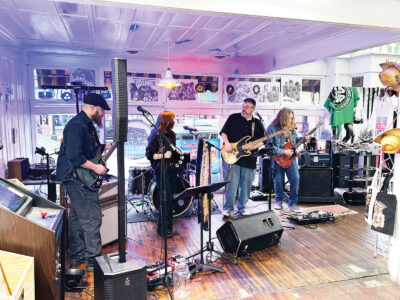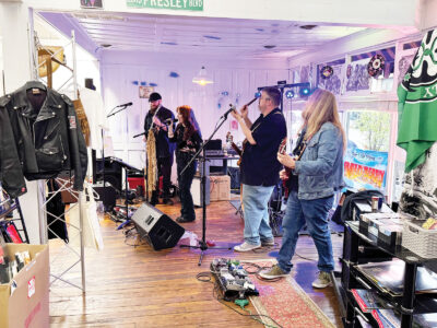 - Residents from the community browsed through sales at First City Records while enjoying covers from the Gypsy River Band’s live performance. (Photo by Amber Phipps)