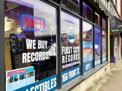 - First City Records, 166 Front St., Marietta, participated in First Friday with live performances from the local group Gypsy River Band. (Photo by Amber Phipps)