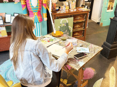 - Corrissa Flesher painted watercolor flowers at the Marietta Makery during First Friday on Friday. (Photo by Amber Phipps)