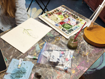 Corrissa Flesher painted watercolor flowers at the Marietta Makery during First Friday on Friday. (Photo by Amber Phipps)