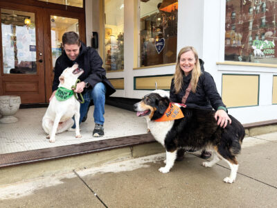 The Humane Society of the Mid-Ohio Valley brought two dogs from the shelter to First Friday on Friday in Marietta. The dogs are available for adoption. (Photo by Amber Phipps)