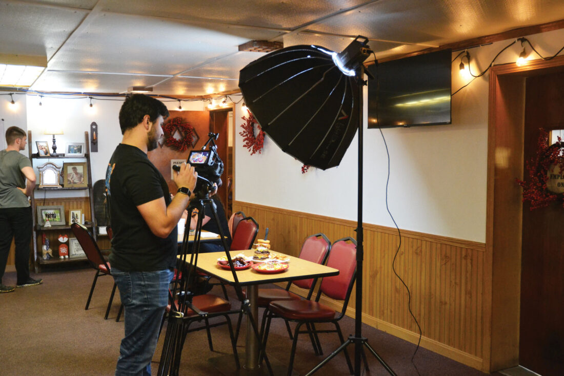 “America’s Best Restaurant” videographer Nick Mammone takes pictures of three signature dishes at the Ohio Redwood Monday as the show was in town to film with the Belpre restaurant. The dishes featured in the episode were the signature ribs, the three-egg western omelet and the Tall Boy Burger, consisting of four beef patties, two slices of cheese and toppings. (Photo by Douglass Huxley)