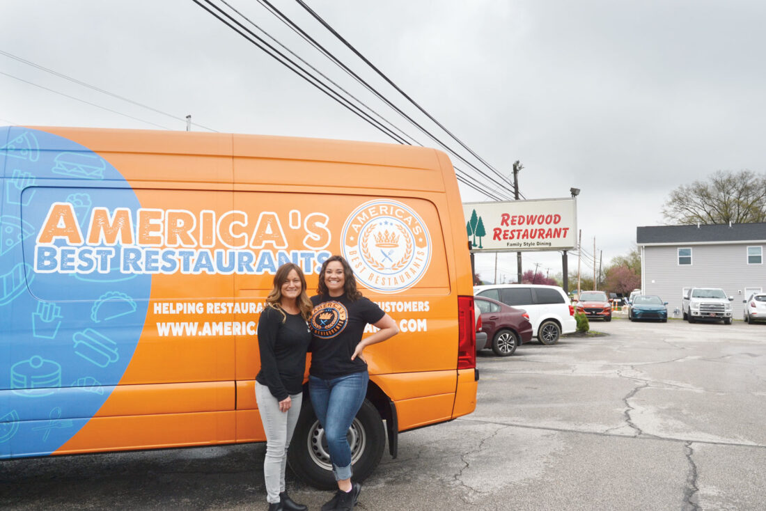 - Ohio Redwood owner Desiree Kerns and “America’s Best Restaurant” host Ashley Dawn pose for a picture outside the restaurant Monday as the show was in town to feature the Belpre restaurant. (Photo by Douglass Huxley)