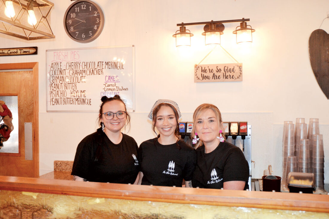 Ohio Redwood servers Hadley Bumgarner, Maddie Smith and Elizabeth Blazosky pose for a picture Monday as a crew from “America’s Best Restaurants” was in town to feature the Belpre restaurant. (Photo by Douglass Huxley)