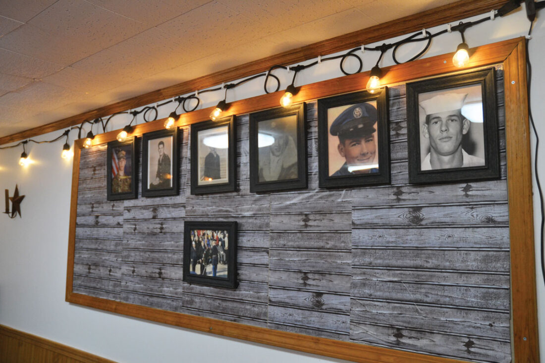 - The Military Room at the Ohio Redwood restaurant in Belpre honors owner Desiree Kerns’ family members who served, including her son, her stepfather, his three brothers and his father. (Photo by Douglass Huxley)