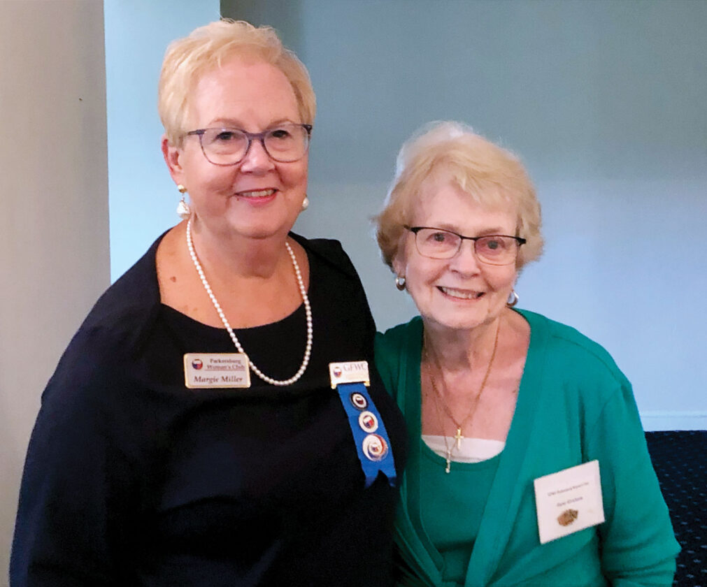 - From left are Parkersburg Woman’s Club Co-President Margie Miller with Jane Graham, who was pinned for 35 years of membership. (Photo Provided)
