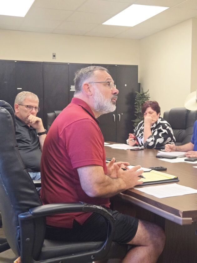 Marietta City Councilman Ben Rutherford suggests that Resolution 79, which would form an Injection Well Task Force, and Resolution 80, which would allow the city to pursue legal action against the Ohio Department of Natural Resources, can work in tandem during a Water and Sewer Committee meeting Tuesday at 304 Putnam St. (Photo by Gwen Sour)