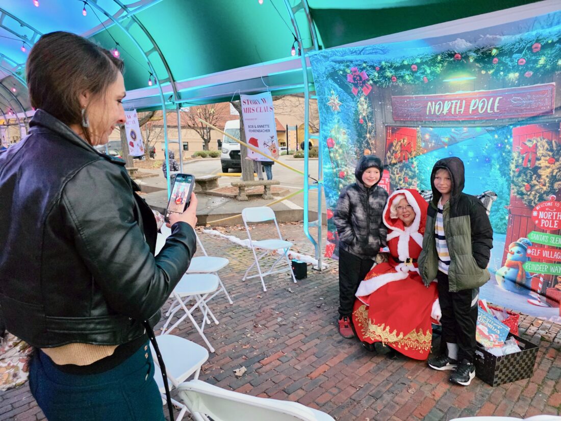 Kristen McCartney takes a picture of Kenall Smith, Mrs. Claus and Sammy White during Winterfest in Parkersburg on Saturday. (Photo by Gwen Sour)