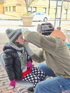 Clara McBridge gets her face painted by Amy Stockl at Winterfest on Saturday. (Photo by Gwen Sour)