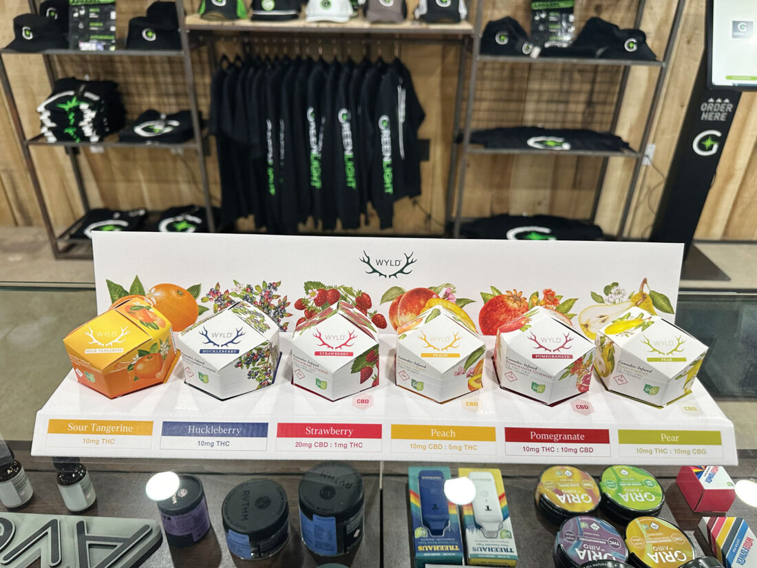 WYLD THC gummies sold at Greenlight Dispensary in different flavors like sour tangerine, huckleberry, strawberry and peach. (Photo Provided)