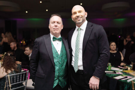 Dr. David Gnegy, West Virginia University assistant professor and director of cardiovascular services at the WVU Heart & Vascular Institute at Camden Clark, and WVU Medicine Camden Clark Medical Center President and CEO Sean Smith pose for photos at the Camden Clark Foundation’s Hearts for Good: Wicked Ball on Feb. 28 at the Wood County Resiliency Center. (Photo Provided)