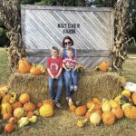 - Photo by Brett Kline From left, Gabriel Hissam and his mother Angie Hissam who is holding her younger son, Archer, while they sit on a Butcher Family Farm pumpkin display that was created for photo opportunities.