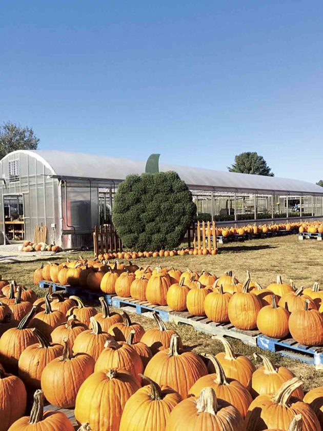 There are pumpkins of various sizes for sale at the Butcher Family Farm, many types of flowers and the Butcher Family Farm produce stand will be open.