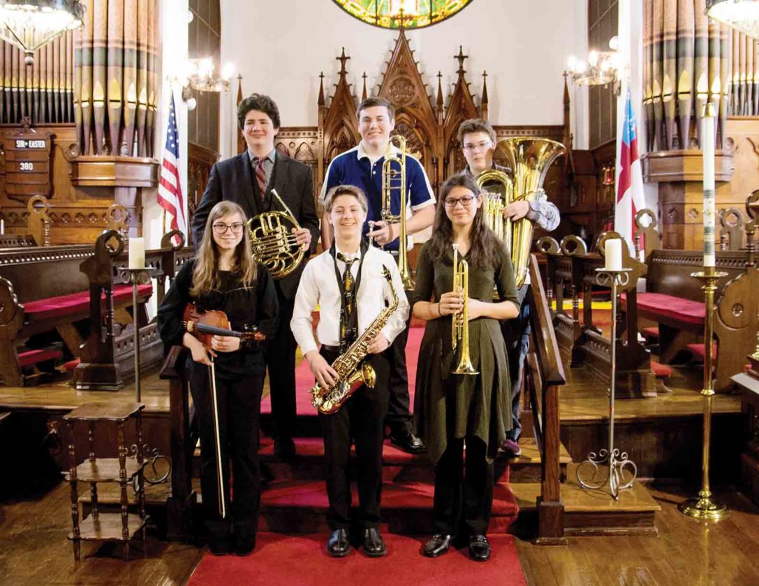 Photo Provided Ethan Hupp of Ravenswood High School on Saturday was named the first Dr. James F. Dunphy Scholar. Back row, from left, Hupp; Brayden Walcutt, a Parkersburg South High School junior; and Jake McGraw, a Ripley Middle School eighth-grader. Front row, Zoe Daugherty, a Williamstown High School eighth-grader; Nicholas Bain, a Wirt County Middle School eighth-grader; Aireen Maurisio, a Parkersburg High School freshman. The students posed in the Trinity Episcopal Church in Parkersburg.