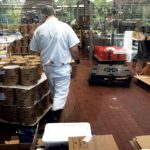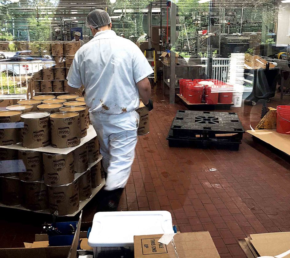 Photo by Amy Phelps A factory worker prepares to move large ice cream containers for use in restaurants.