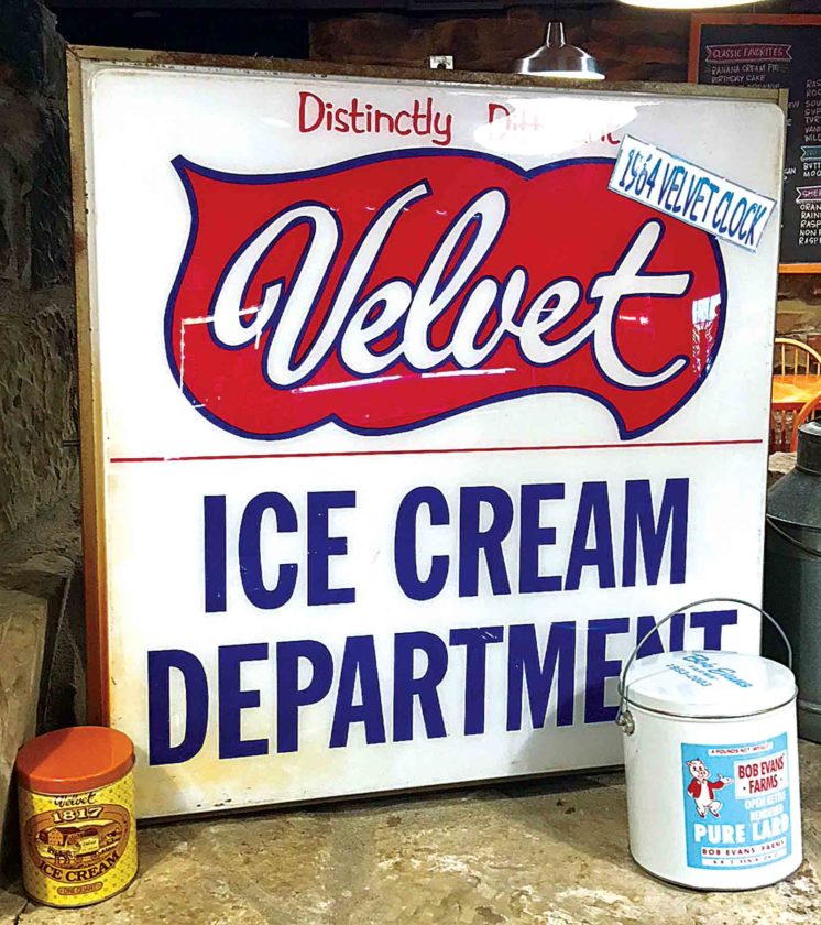 - Photo by Amy Phelps One of the many displays in the museum shows old scoops and signs of Velvet Ice Cream.
